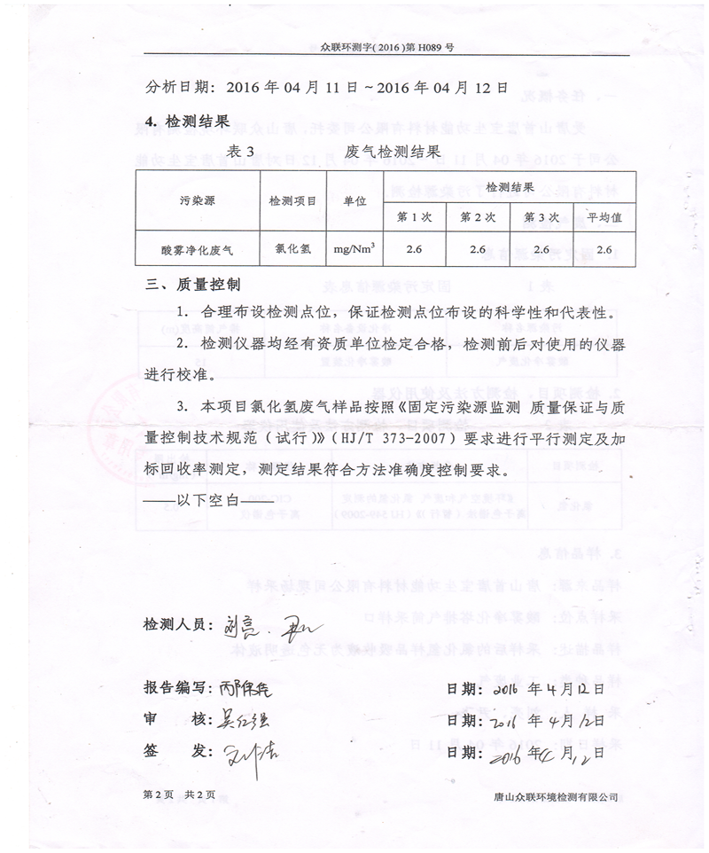 我們為每位客戶提供酸霧設備的專業氣體檢測,每個客戶的檢測結果都大大低于國家標準和地方標準。